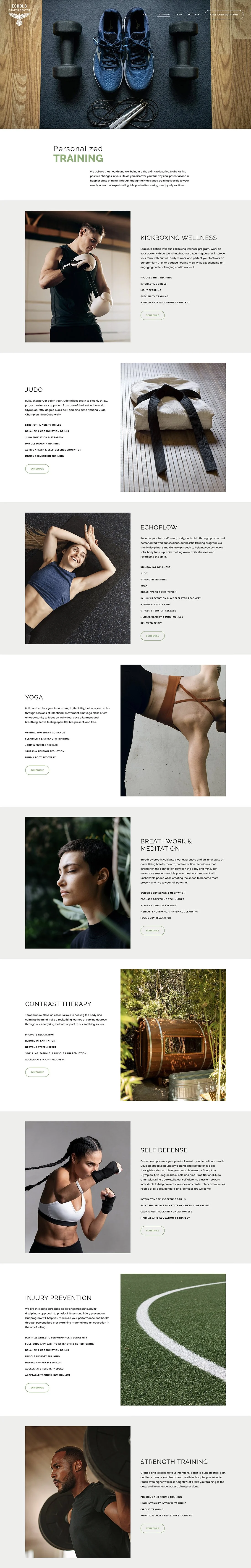 My objective was to take readers on a journey through the full Echols Fitness experience before even stepping foot inside the facility. I wrote original copy for each web page – including the facility specifications and personal training programs.